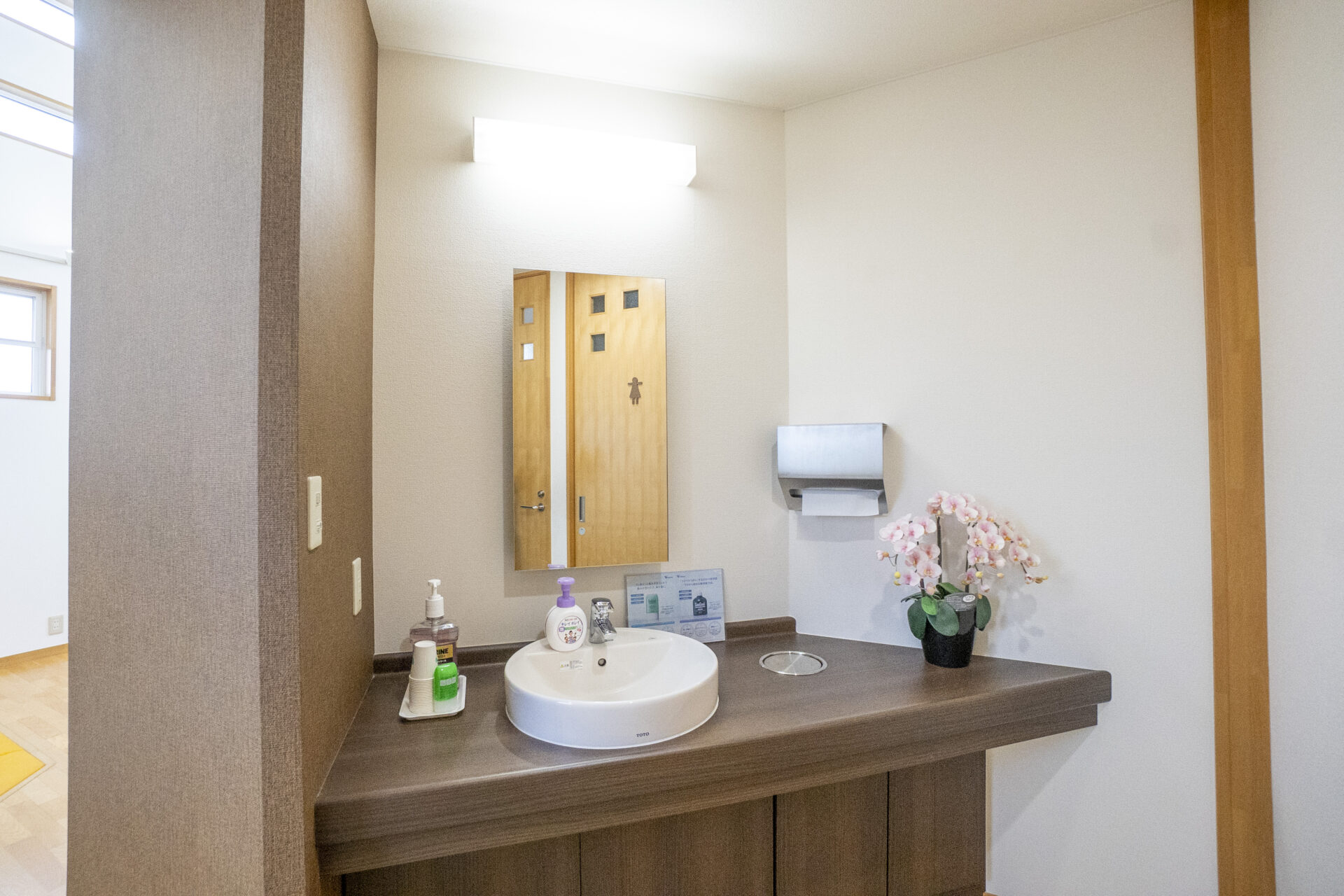 サニタリースペースは男女別になっており、広い洗面スペースもご用意しております。